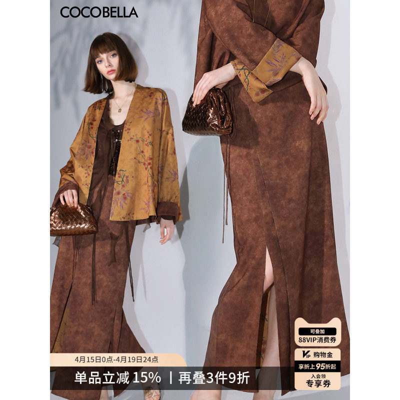 COCOBELLA仿香云纱双面异色提花半身裙新中式国风长裙HS0055