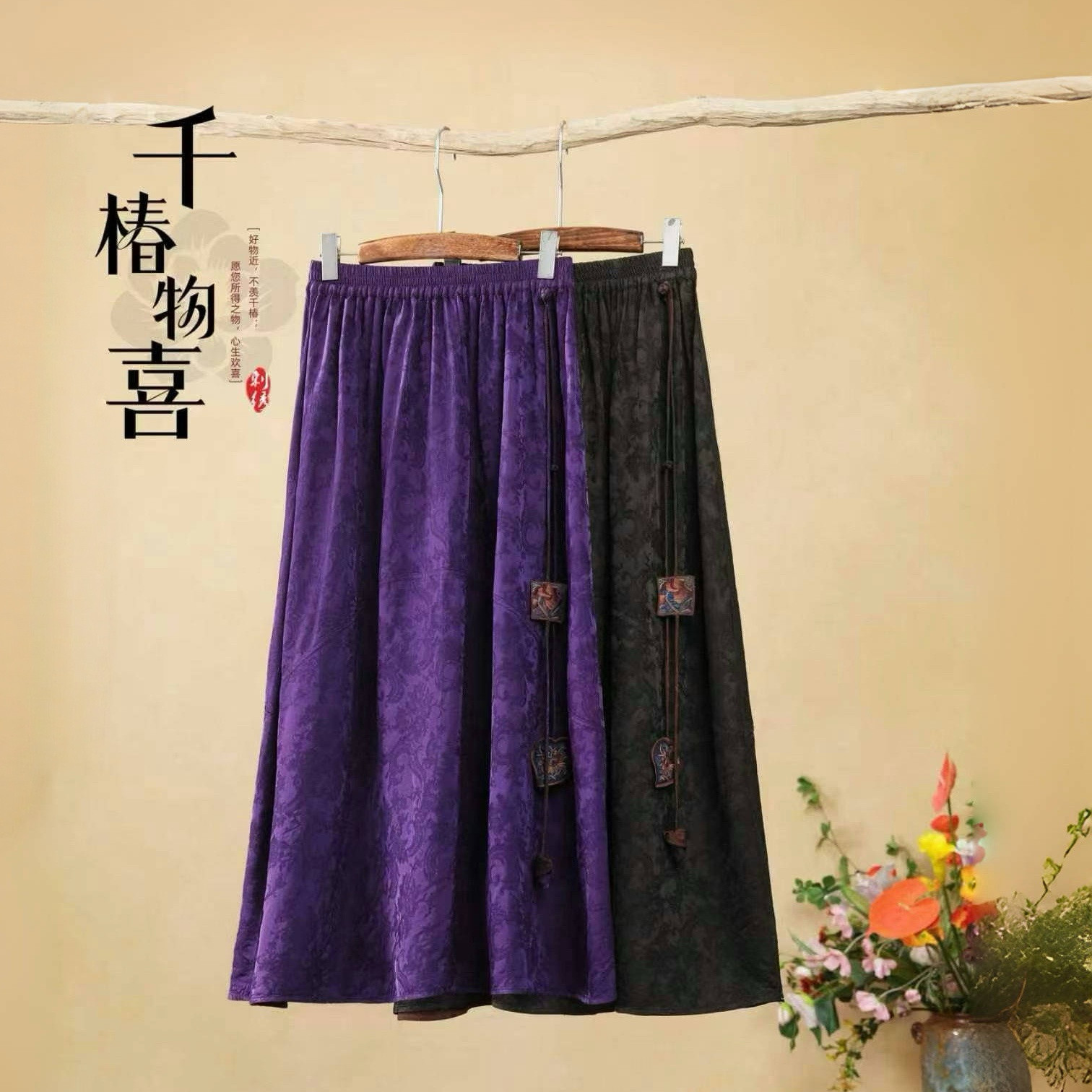千椿物喜新中式重工刺绣半身裙人丝香云纱紫色A字裙2026春夏高级