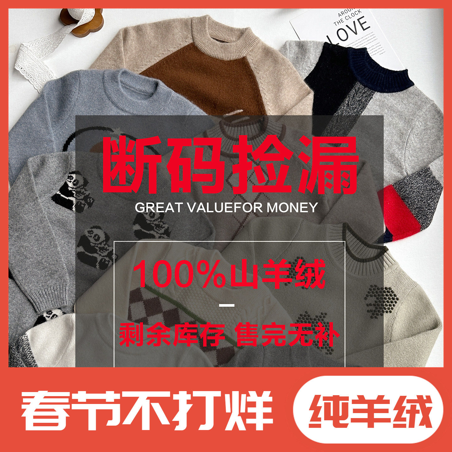 断码儿童羊绒衫瑕疵特价处理男女款圆领宝宝羊毛衣加厚保暖纯清仓
