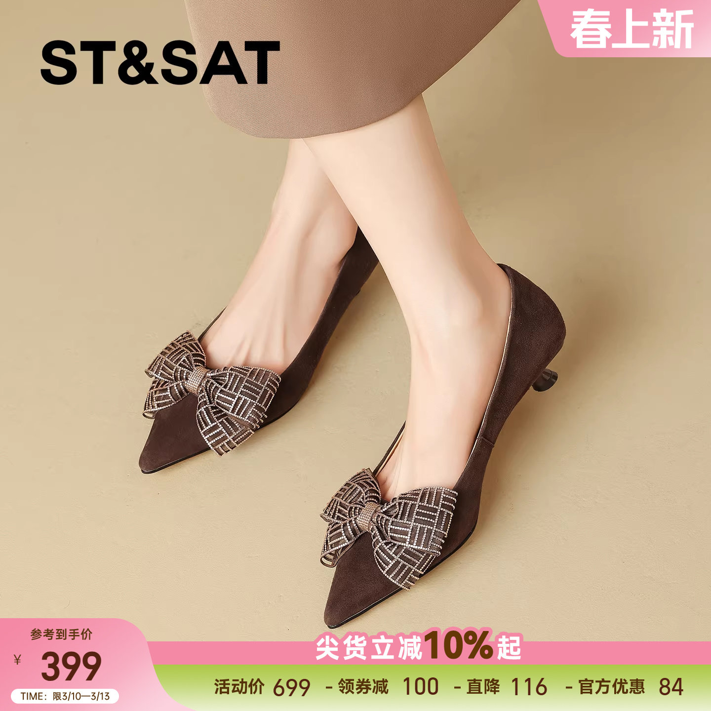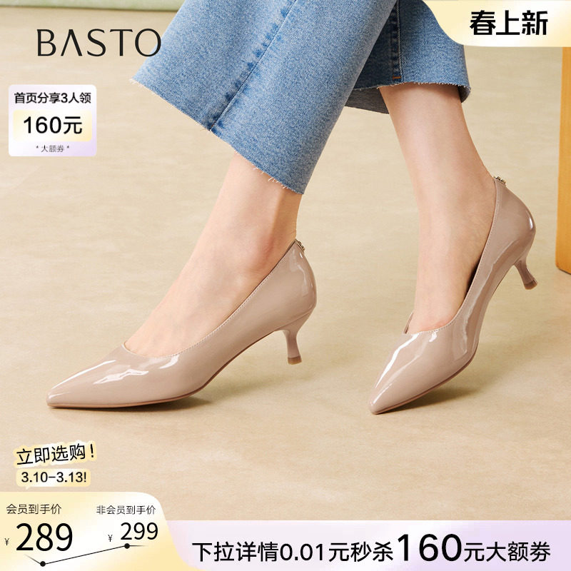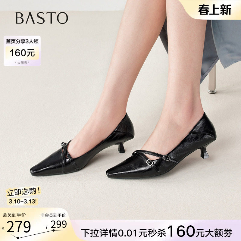 百思图26春新款通勤羊皮小猫跟高跟鞋尖头女浅口细跟单鞋K5828AQ6