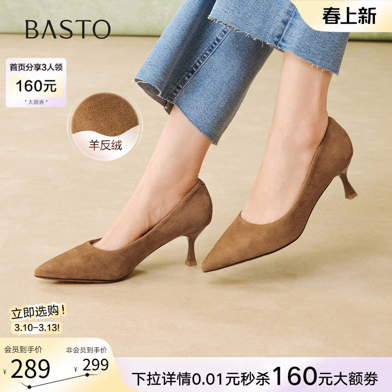 百思图2026春季新款通勤细跟尖头高跟鞋工作鞋女浅口单鞋W1071AQ6