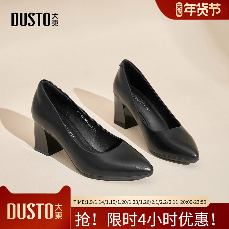 - 高跟鞋 粗跟真皮单鞋 女