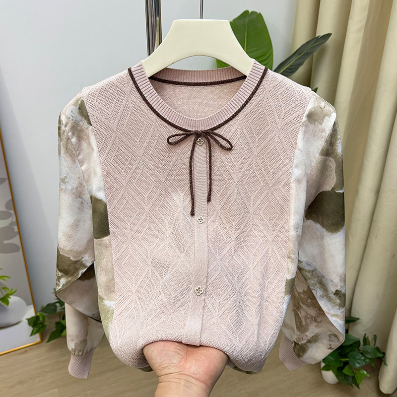 中年妈妈春装2026新款时尚长袖针织上衣冰丝雪纺T恤中老年女小衫