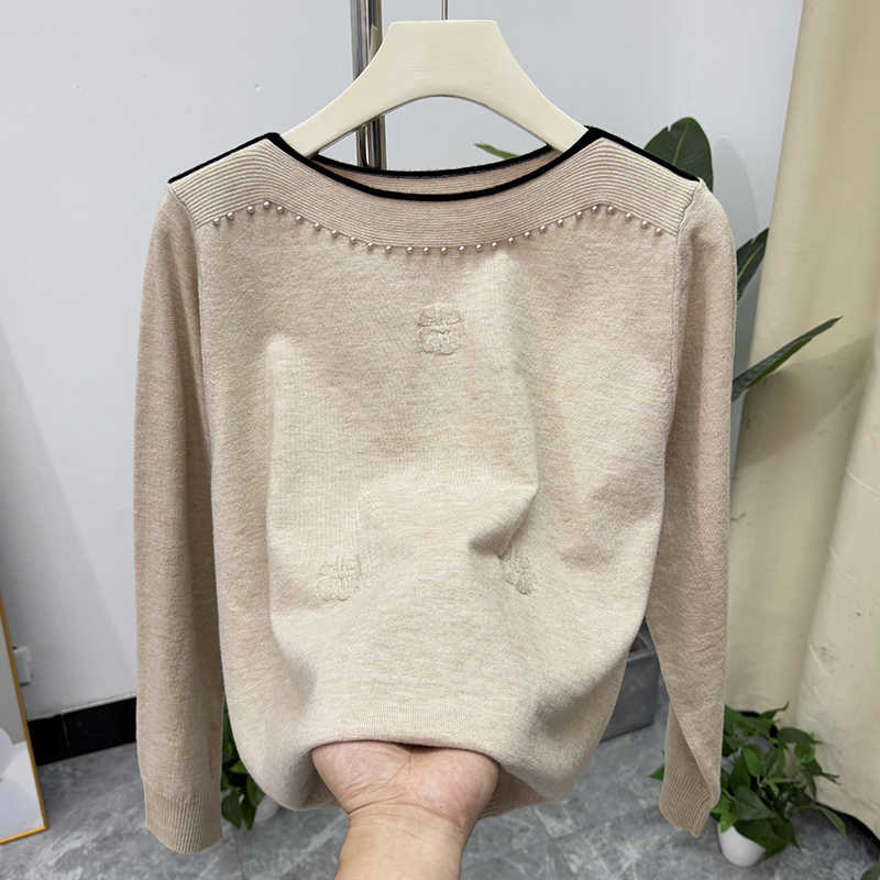 中年妈妈秋装时尚一字领针织上衣洋气毛衣T恤中老年打底衫女小衫