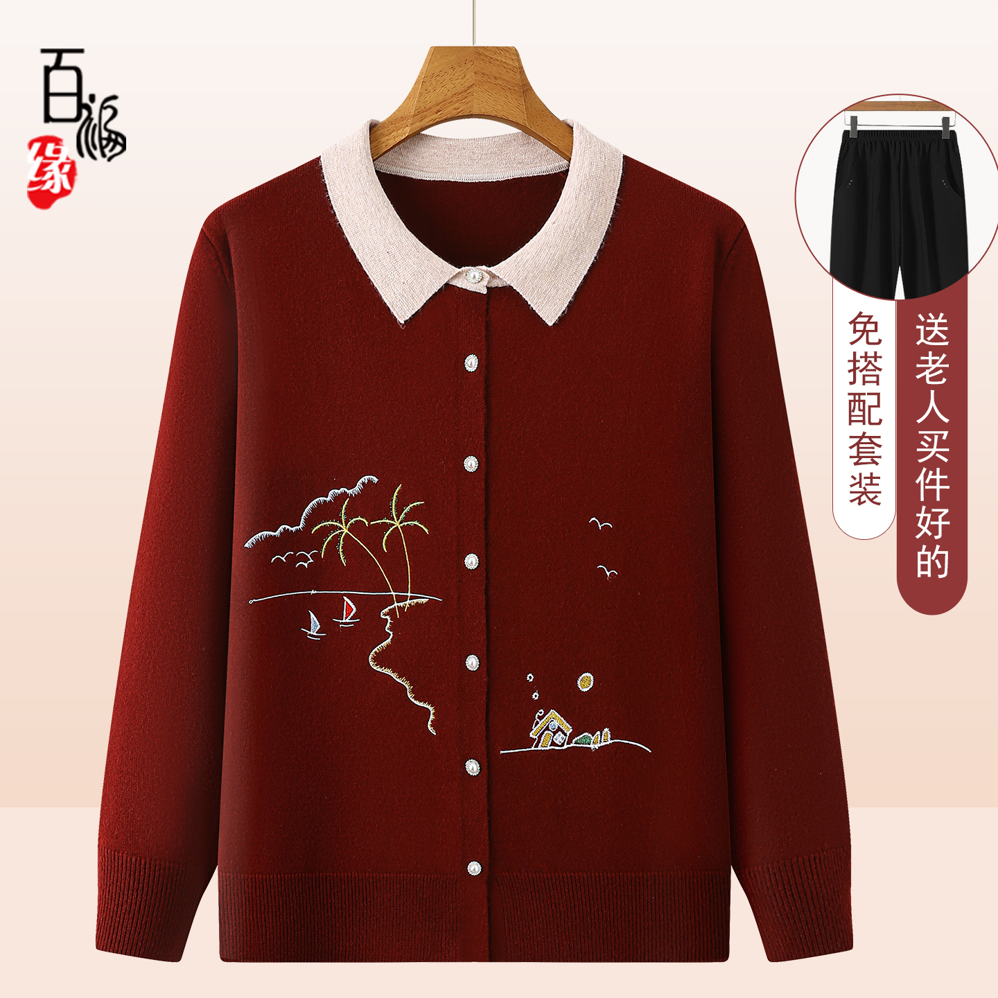 中老年妈妈秋装国风针织打底衫2025秋冬毛衣新款上衣中年妇女小衫