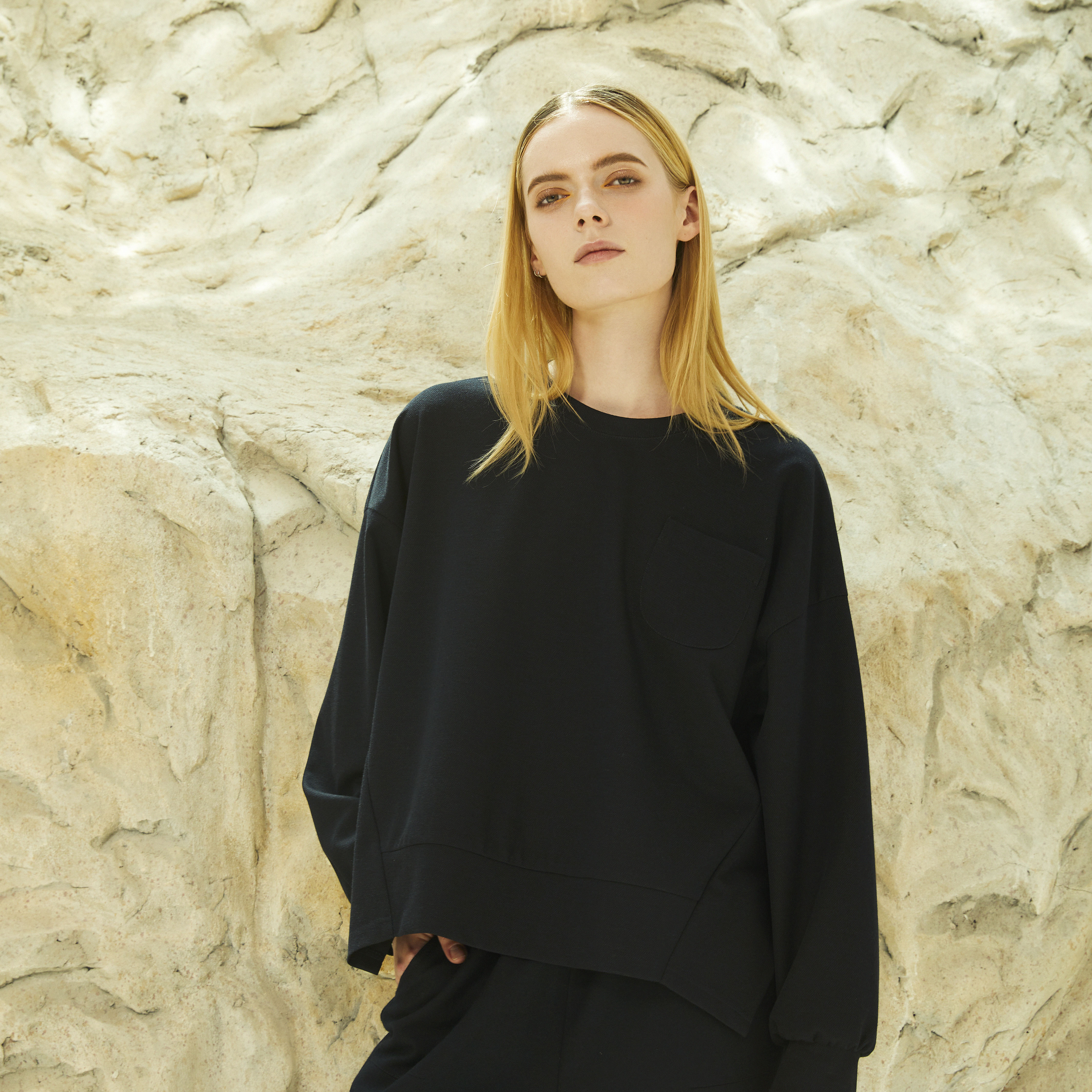 XINSILU新思路女装专柜秋装时尚纯色圆领落肩袖宽松卫衣女小衫
