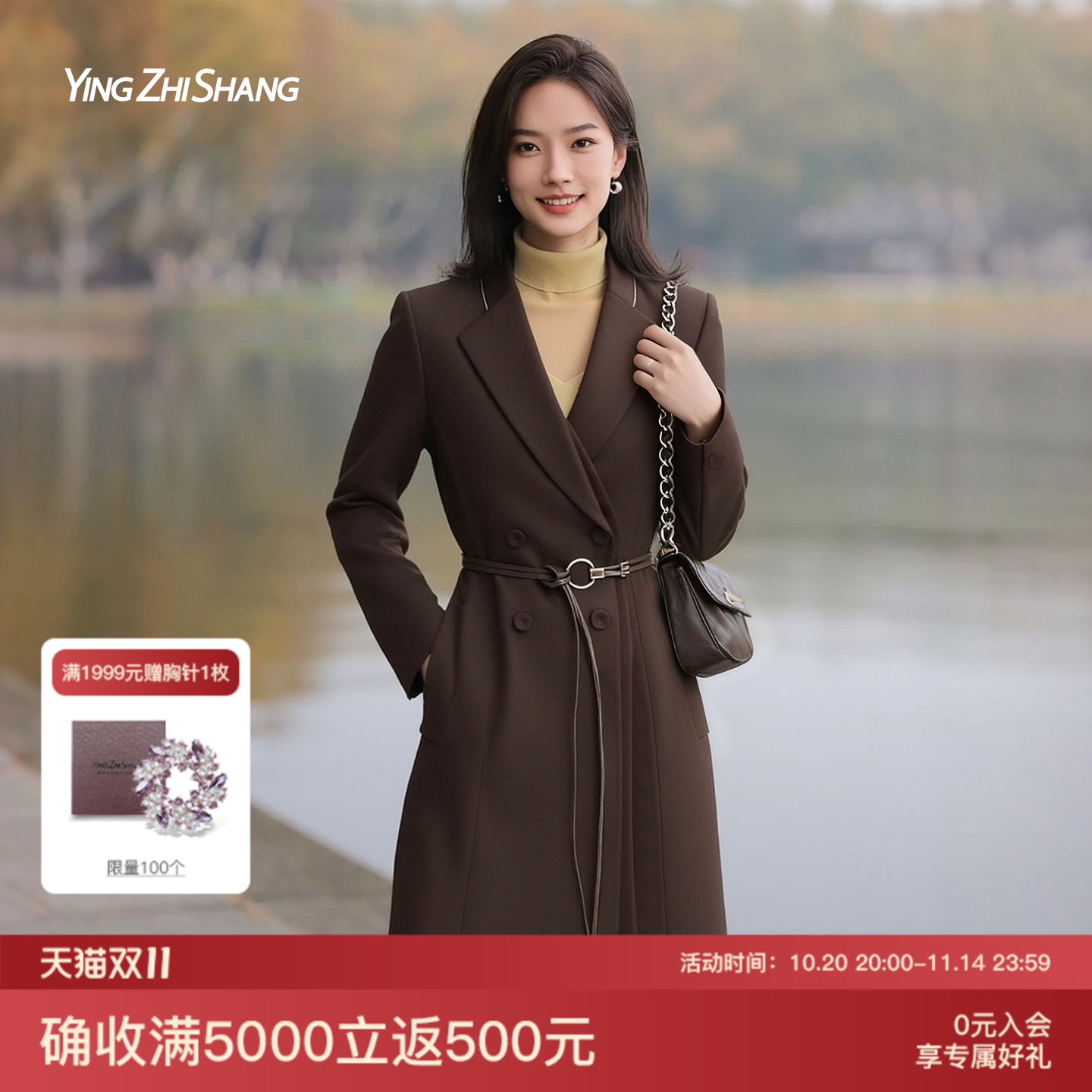 声雨竹专柜同款秋冬季新款毛呢外套女士加厚保暖暖色系中长款大衣
