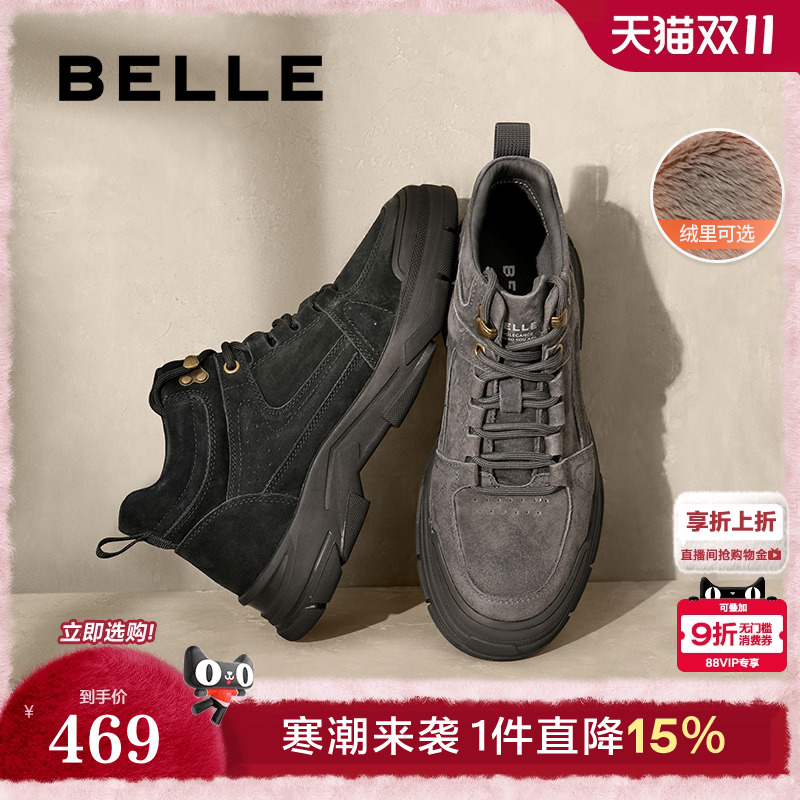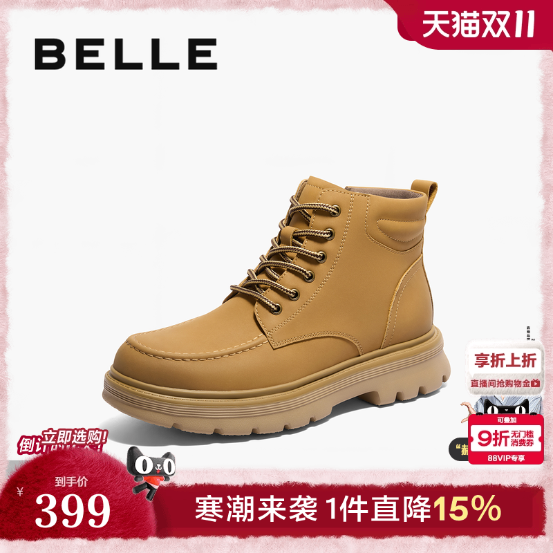 百丽男鞋户外登山工装靴大黄靴男靴冬新厚底休闲短靴D3W40DD4