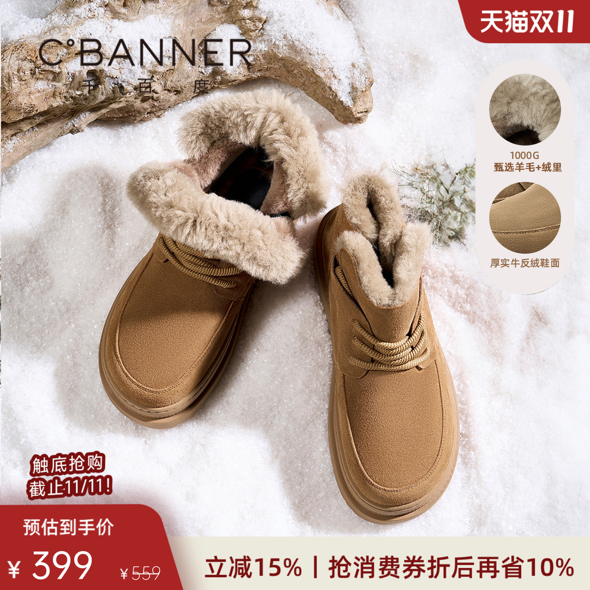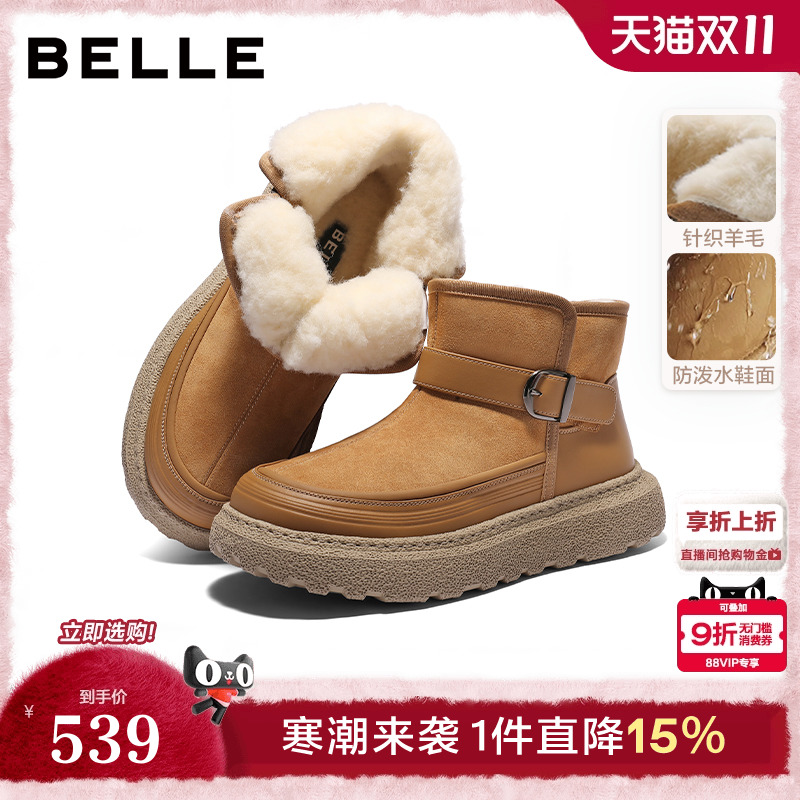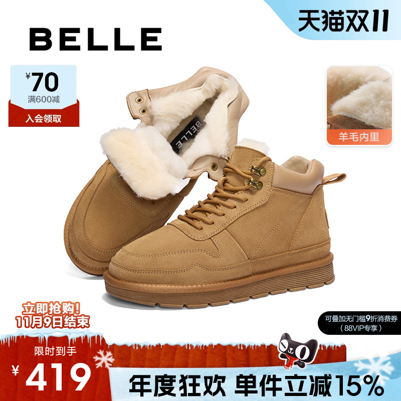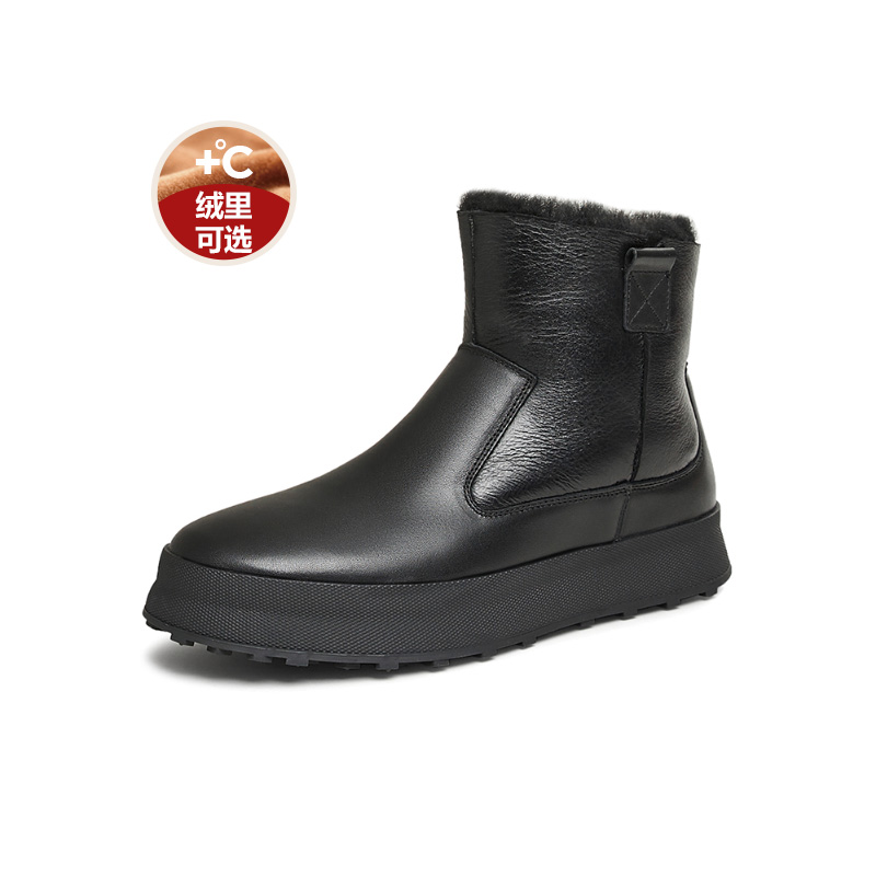 百丽男鞋羊毛雪地靴男士短靴户外加绒保暖棉鞋男靴子冬季A1334DD3