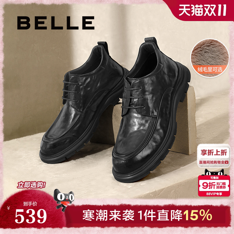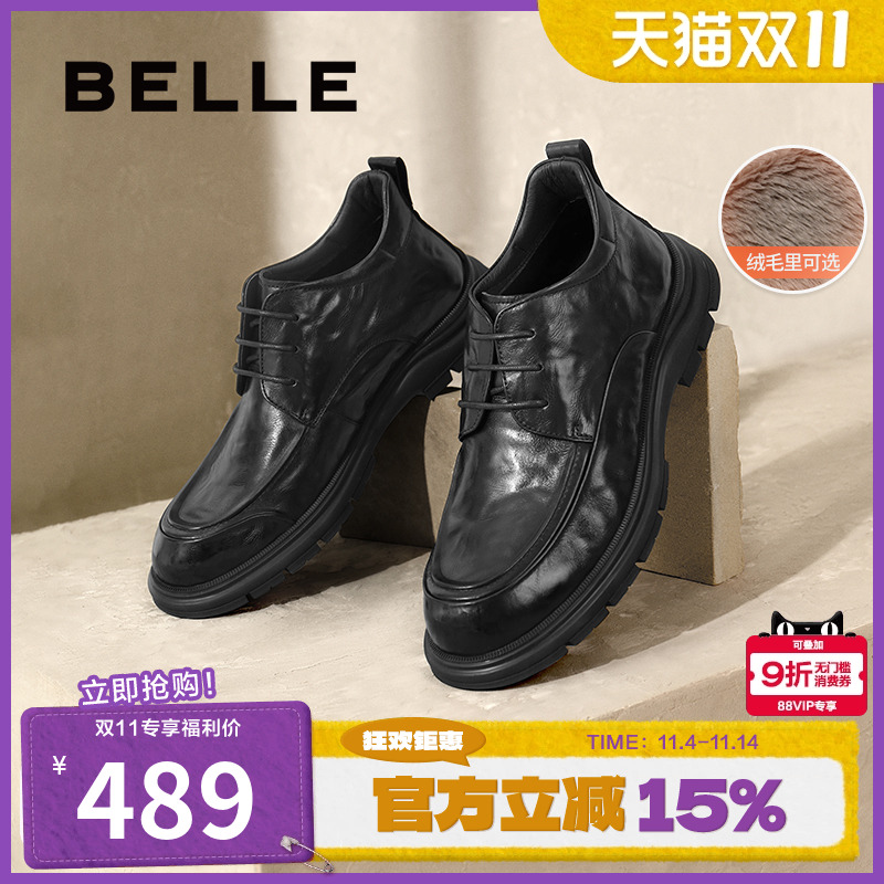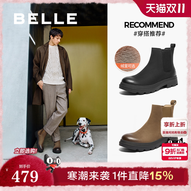 百丽男鞋切尔西男靴冬季厚底短靴英伦风马丁靴烟筒靴加绒A0598DD1