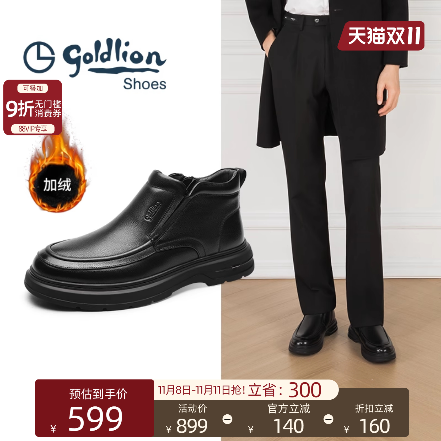 - 马丁靴男款加绒英伦