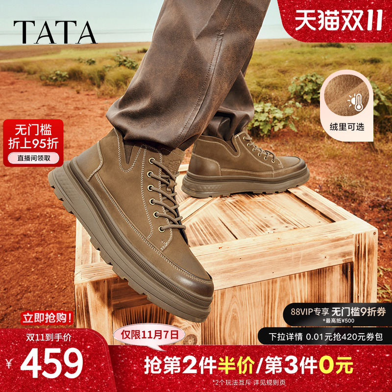 Tata他她工装靴高帮鞋男鞋加绒厚底男士马丁靴男靴冬季TDW01DD3
