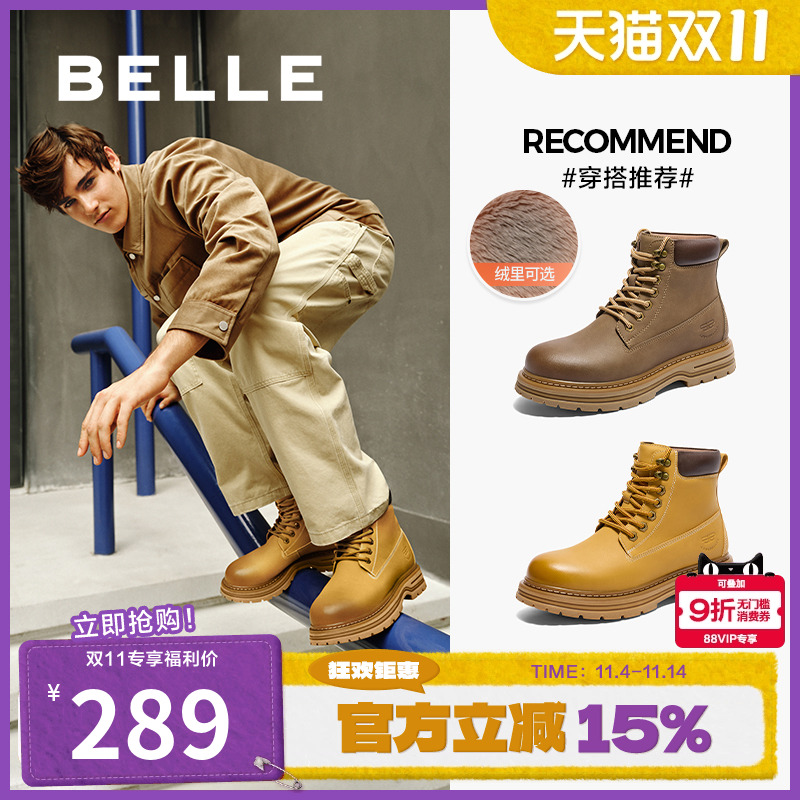 百丽男鞋户外加绒工装靴男靴冬新款马丁靴休闲短靴大黄靴8MR01DD4