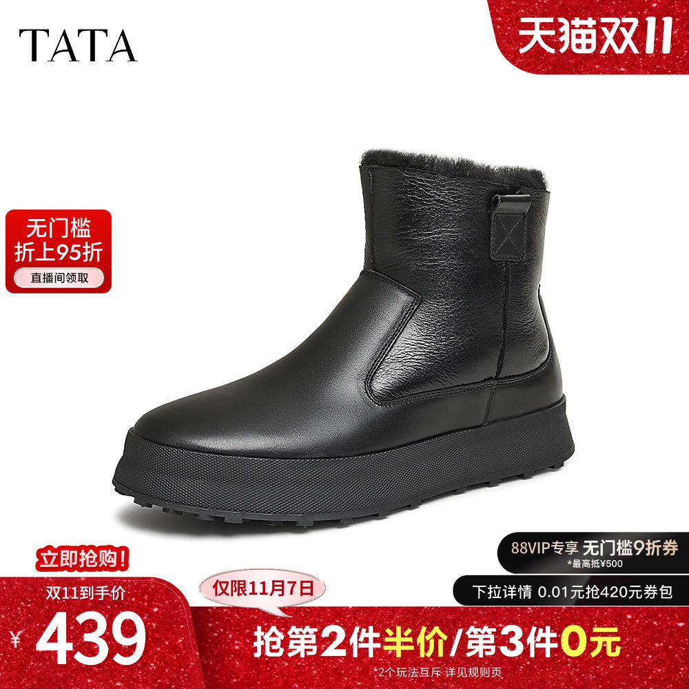 TATA他她厚底加绒雪地靴男靴冬季保暖短靴子棉鞋2025新款ODY02DD4