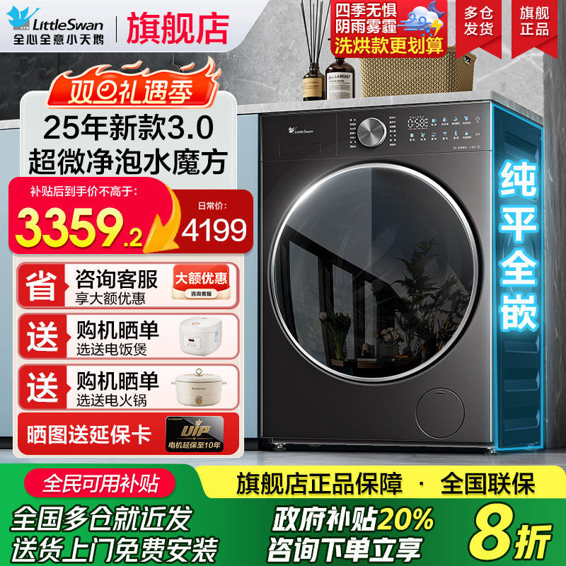 小天鹅小乌梅3.0洗衣机滚筒全自动家用大容量洗烘干一体旗舰正品
