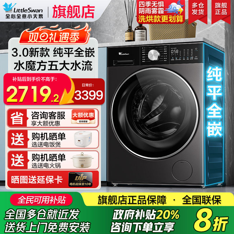 小天鹅洗衣机小乌梅3.0超薄滚筒家用10公斤全自动烘干一体嵌入式