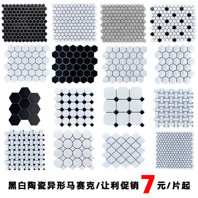 华欣硕六角陶瓷马赛克瓷砖黑白色厨房卫生间阳台墙砖浴室防滑地砖