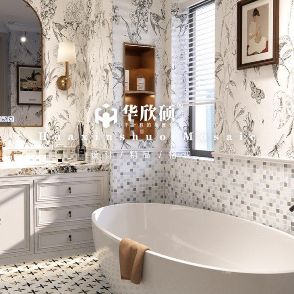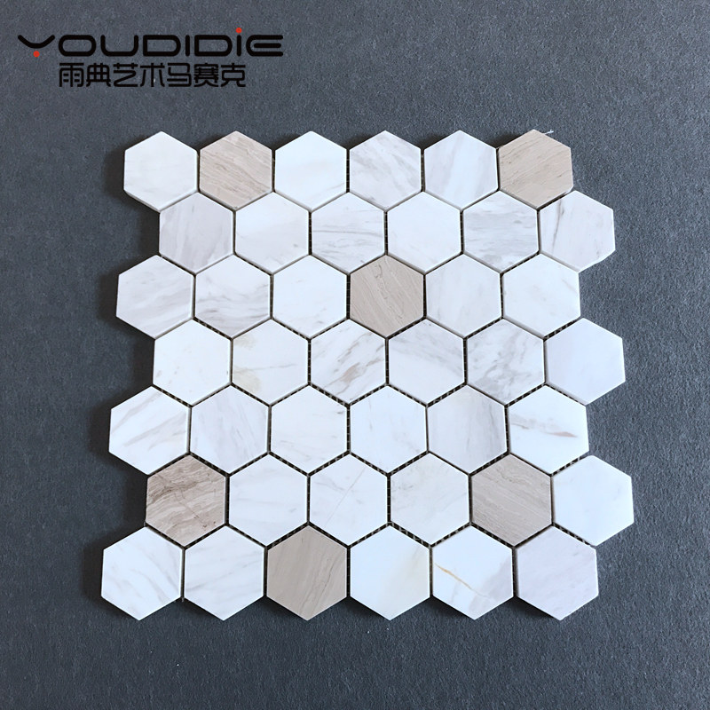 白色灰色六角形大理石马赛克瓷砖背景墙厨房浴室卫生间地面防滑砖