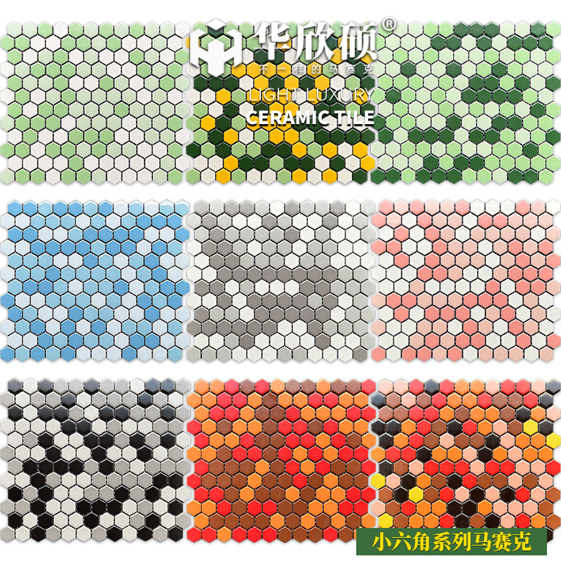 华欣硕小六角彩色陶瓷马赛克瓷砖红橙黄绿粉卫生间阳台背景墙地砖