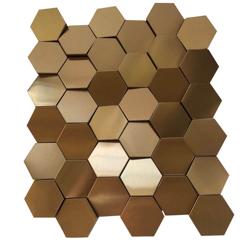 金属不锈钢小六角瓷砖马赛克背景墙玄关卫生间拉丝镜面现代装饰墙