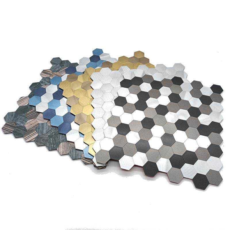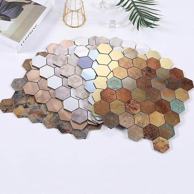 3D立体六角金属墙贴自粘马赛克瓷砖客厅厨房卫生间背景墙小颗粒贴