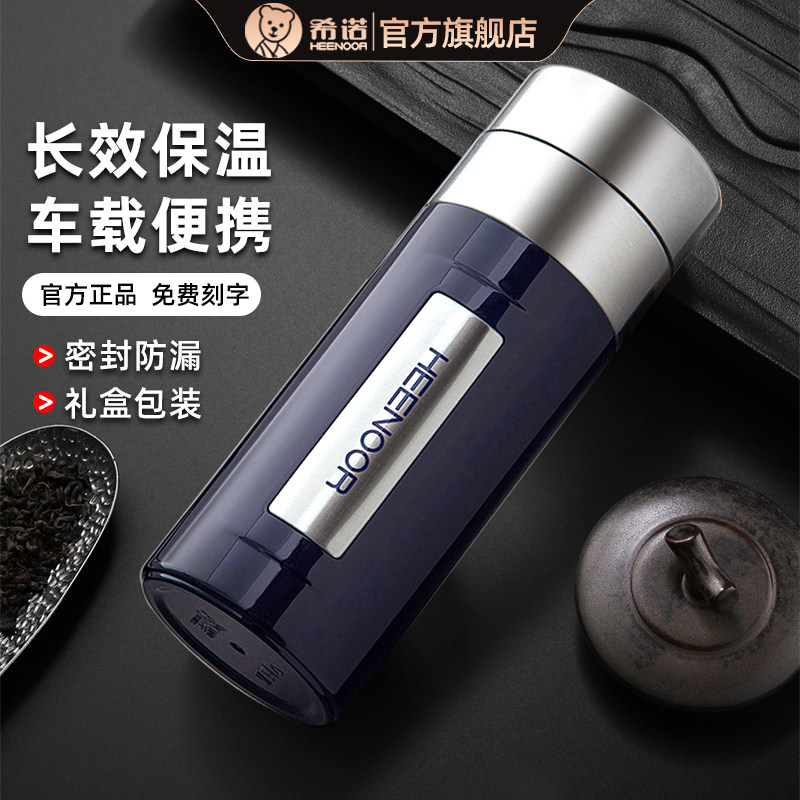 希诺保温杯大容量男款高档车载水杯女不锈钢带滤网定制茶杯礼盒装