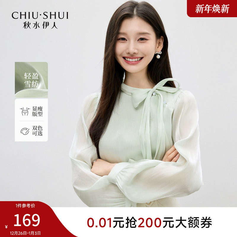 秋水伊人蝴蝶结长袖衬衫女上衣2025秋冬新款雪纺衫法式小资小衫