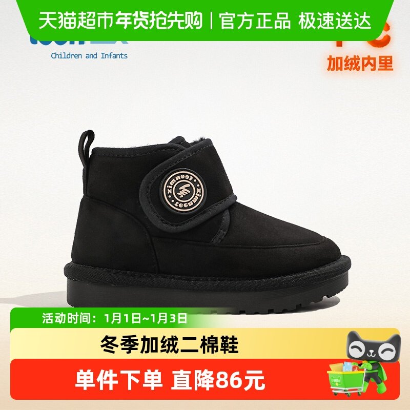 迷你巴拉冬季加绒保暖新款男童雪地靴小童鞋女童棉靴宝宝学步鞋子
