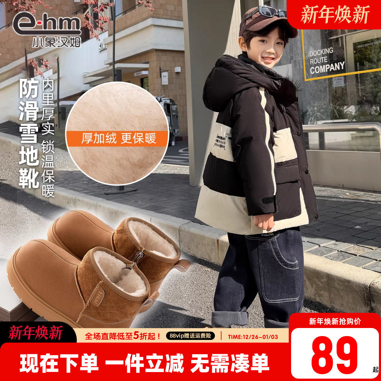 小象汉姆童装男童雪地靴冬季儿童棉鞋2025新款男孩加绒加厚鞋子潮