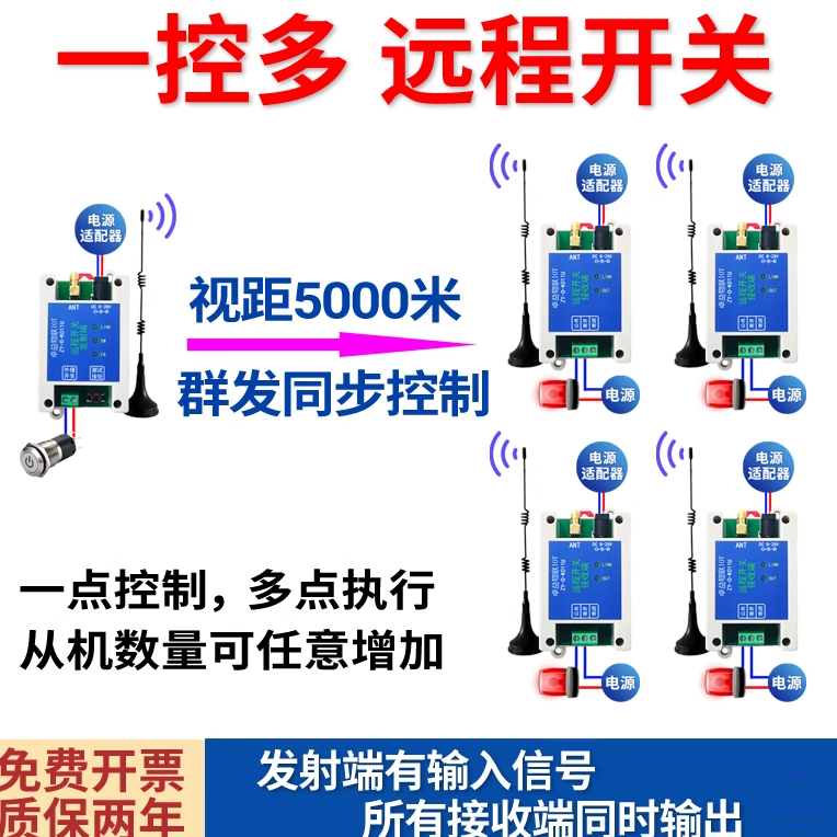一对多路远程同步开关模块远距离继电器无线照明水泵控制器开关量
