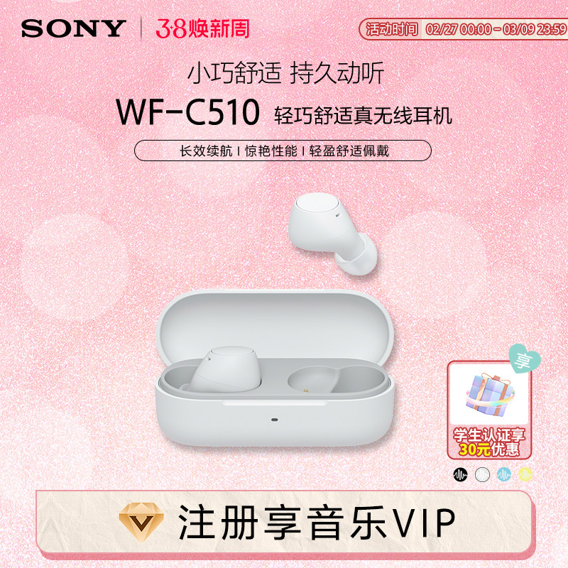 Sony/索尼 WF-C510 真无线蓝牙耳机入耳式 长效续航 轻盈舒适佩戴