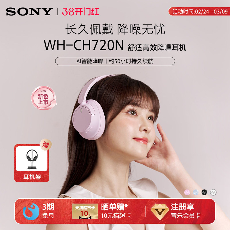 【自营】Sony WH-CH720N 头戴无线蓝牙降噪耳机学生舒适佩戴 国行
