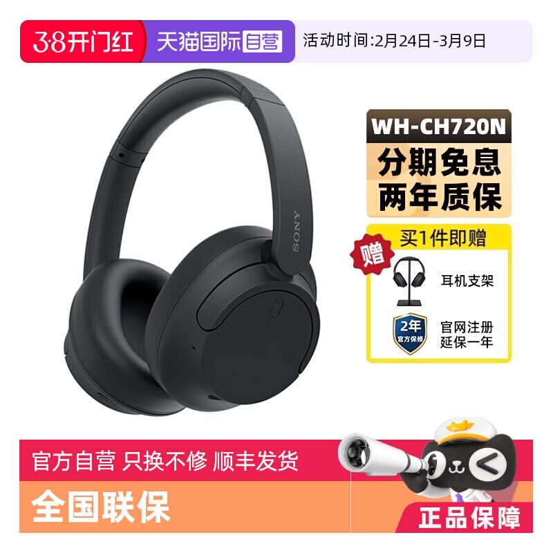 【自营】Sony/索尼 WH-CH720N 头戴式无线蓝牙降噪耳机立体声国行