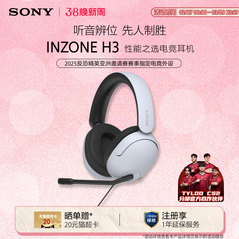 Sony/索尼 INZONE H3 头戴式电竞游戏耳机电脑耳麦有线
