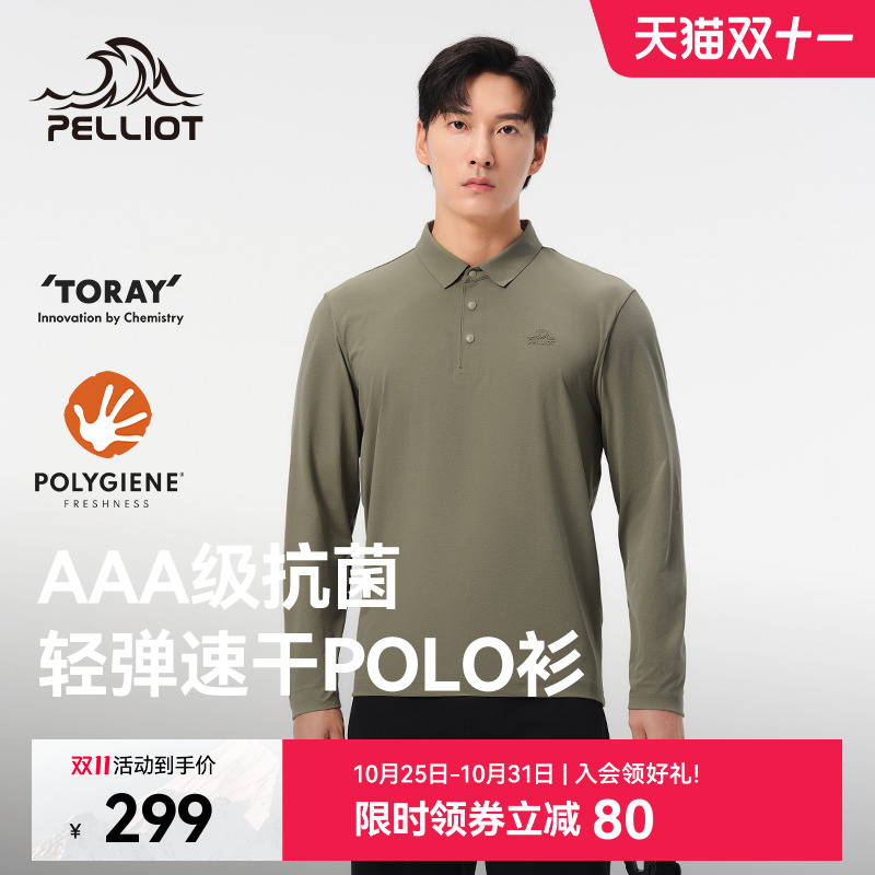 伯希和户外速干T恤男士秋季轻薄运动长袖休闲上衣透气翻领POLO衫