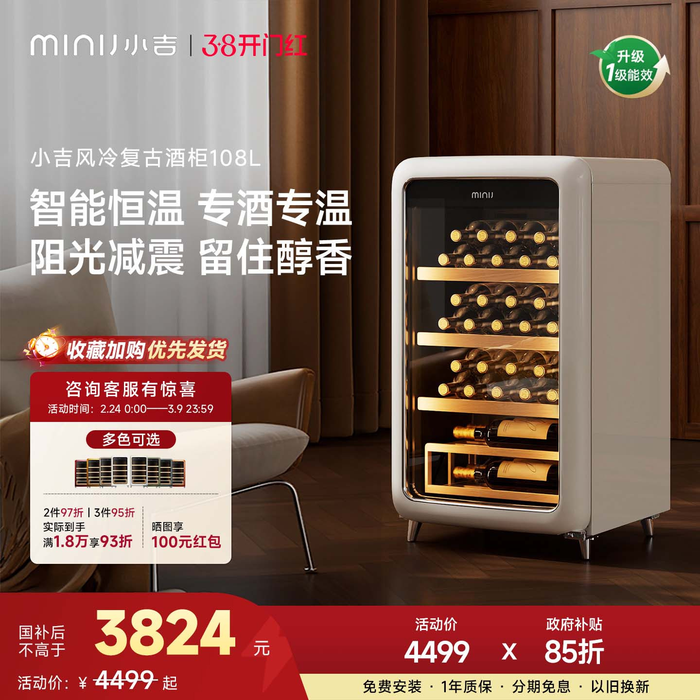 新品MINIJ小吉恒温红酒柜家用双变频冰吧茶叶收纳新款小型冷藏柜