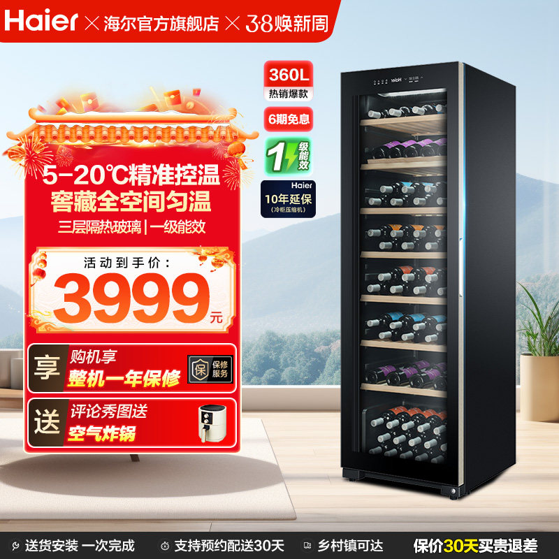海尔360升可装171瓶红酒柜恒温大容量酒窖酒柜家用冷藏冰吧恒温