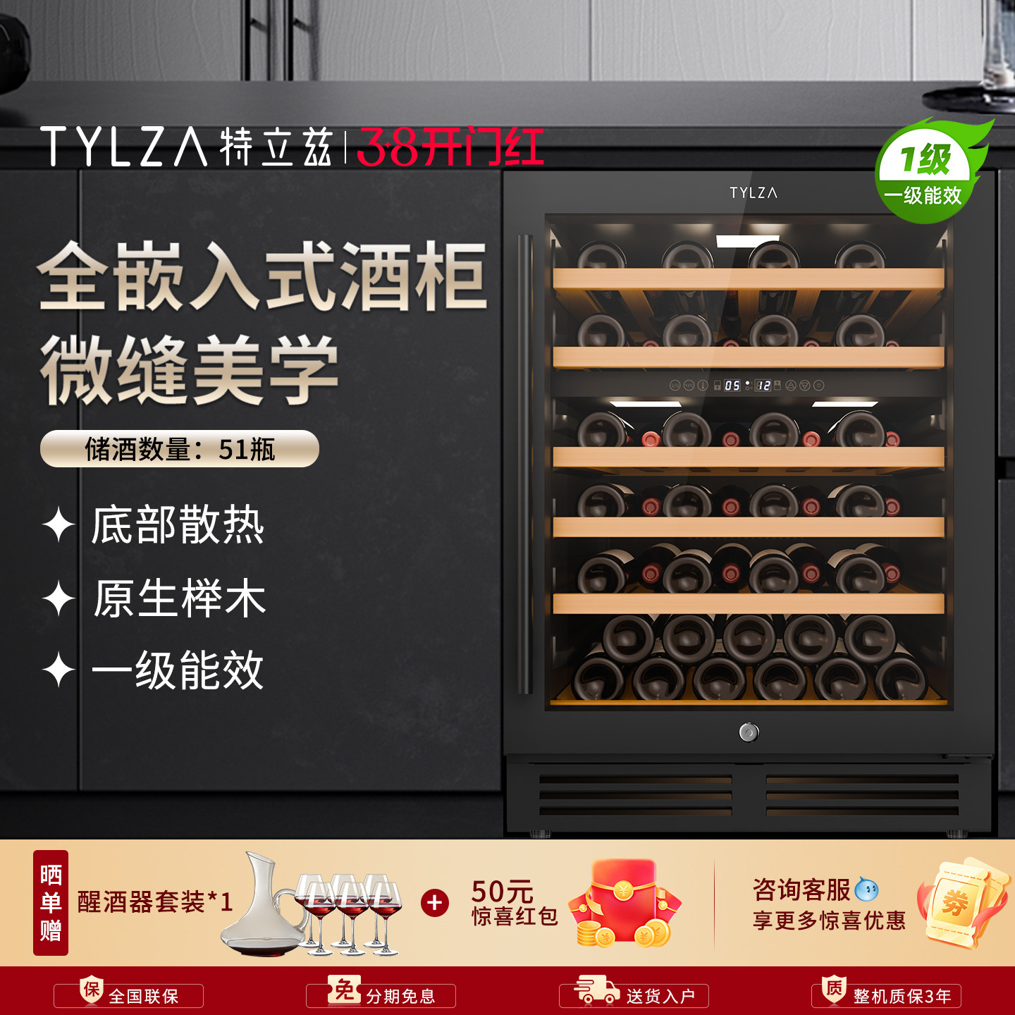 TYLZA全嵌入恒温红酒柜冰吧高端厨房岛台家用橱柜冷藏保鲜柜TW150