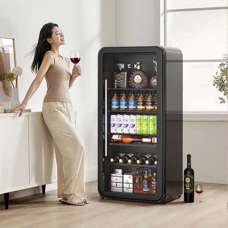 HCK哈士奇复古红酒柜恒温恒湿茶叶家用小型超薄嵌入式冰吧冰箱2.0