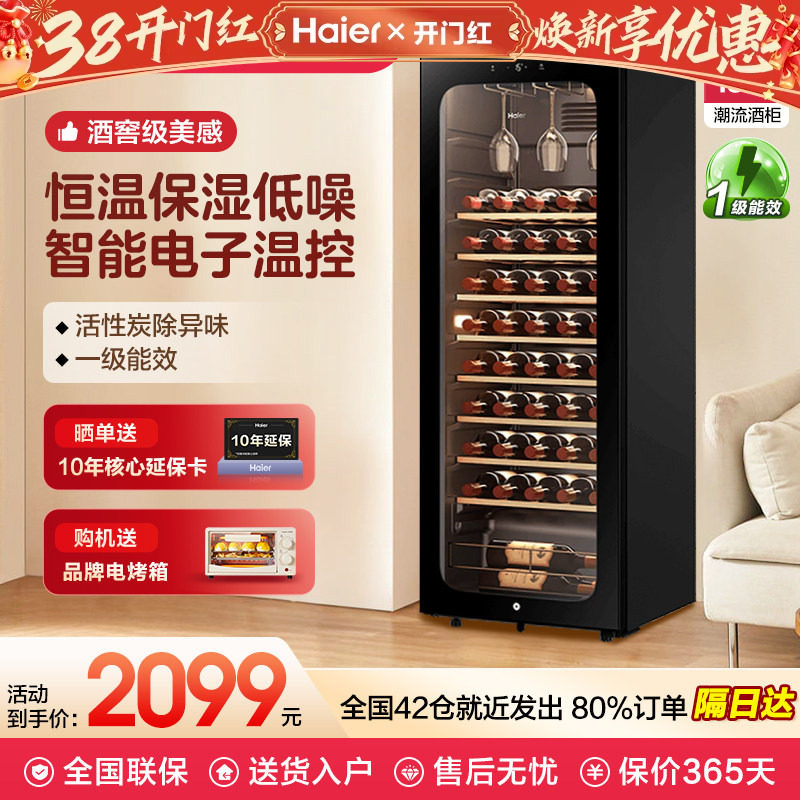海尔 171瓶红酒柜恒温大容量酒窖酒柜家用冷藏冰吧电子恒温柜冰箱