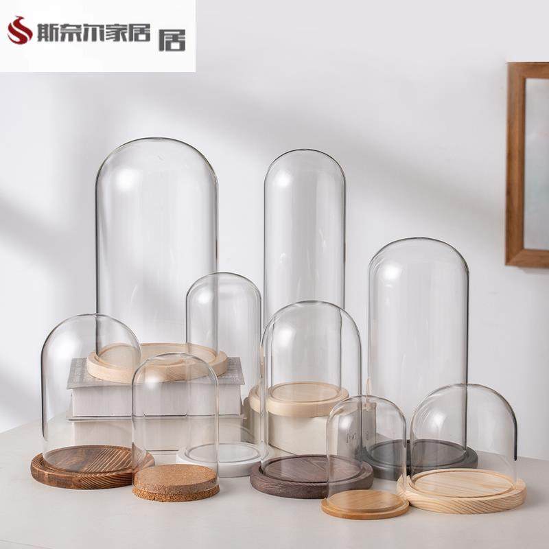 永生花玻璃罩展示盒 桌面摆件diy装饰干花透明手办玻璃罩子防尘罩