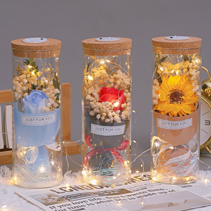 干花保存瓶玫瑰花束软木塞透明收纳展示盒永生材料摆件制作玻璃罩