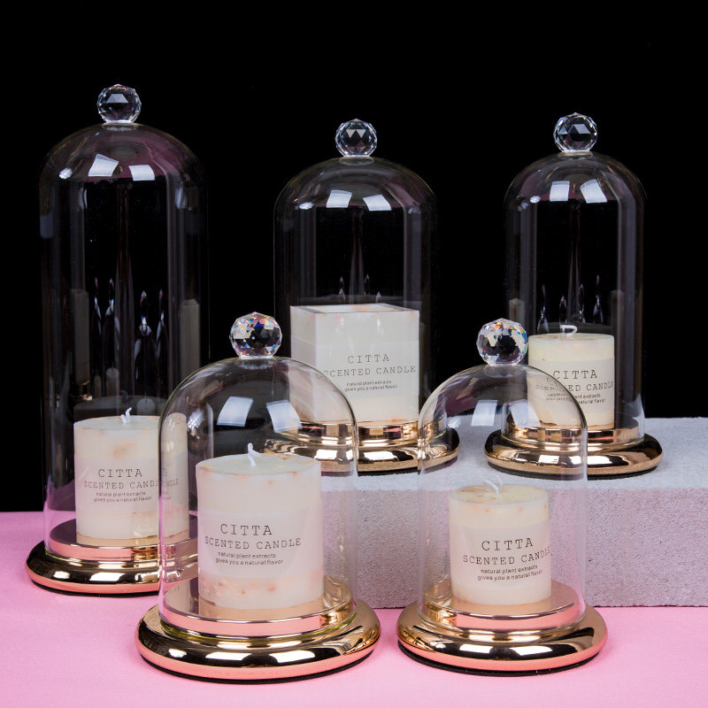 创意简约永生花玻璃罩3D手握模型桌面摆件蜡烛微景观防尘展示罩子