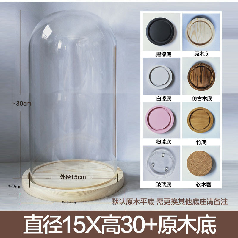 侧面开关原木EVA卡扣防脱落玻璃罩永生花玻璃钟罩盲盒手作展示罩
