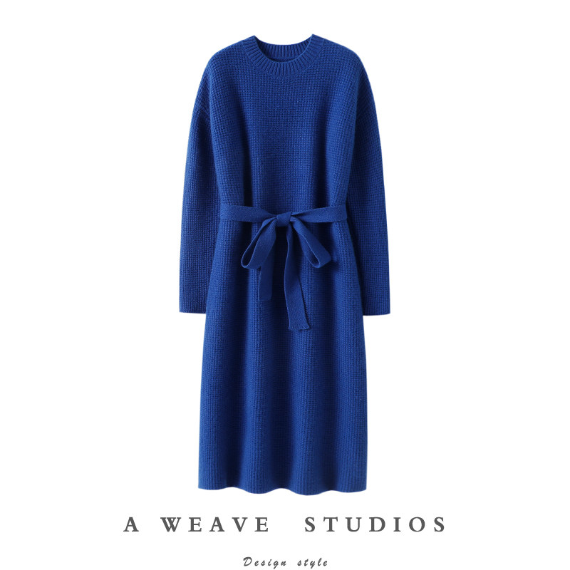 简约百搭~纯山羊绒衫女圆领中长款宽松加厚慵懒风毛衣打底连衣裙