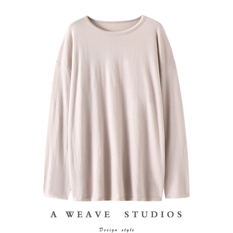 松弛风纯色山羊绒衫女秋冬圆领中长款宽松针织毛衣打底衫羊毛上衣