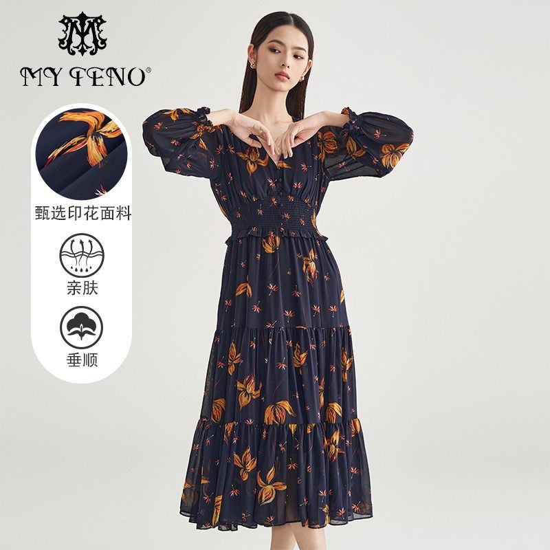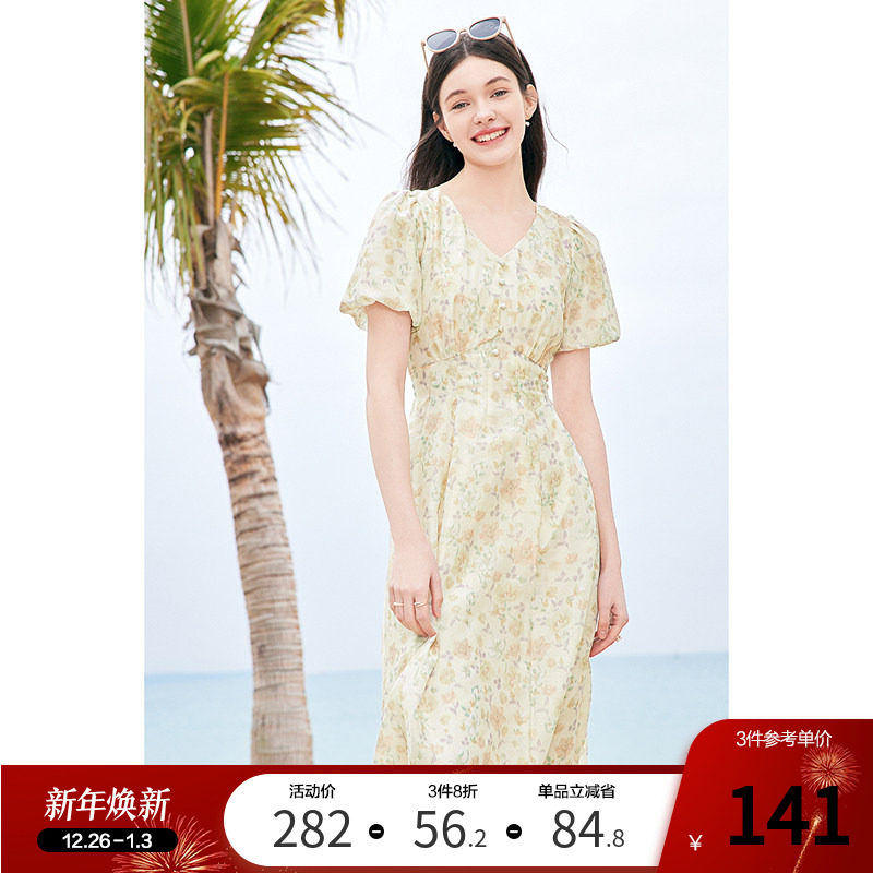 Lavinia v领雪纺碎花裙女夏季新款法式气质高腰显瘦连衣裙F13L152