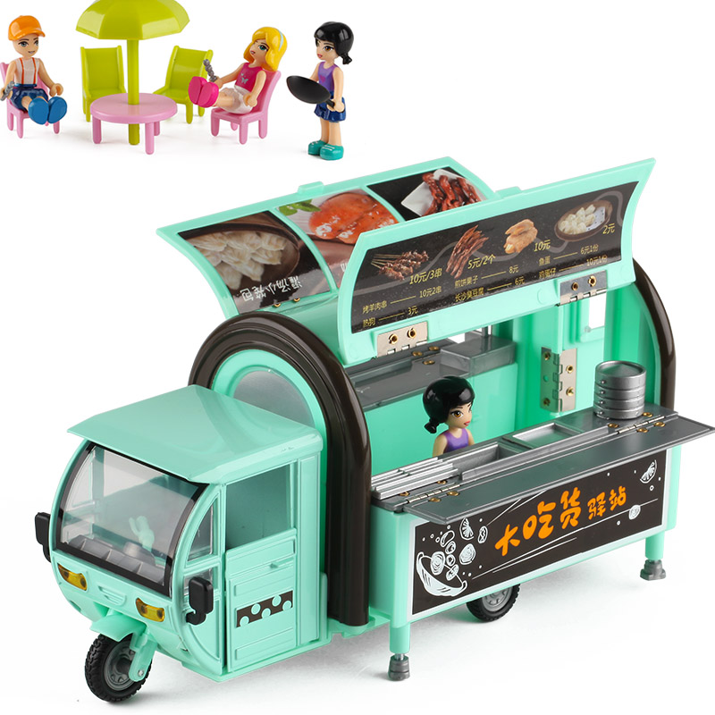 合金流动小吃车模型摊位车仿真夜宵摊车餐具配套汽车野餐零食车男
