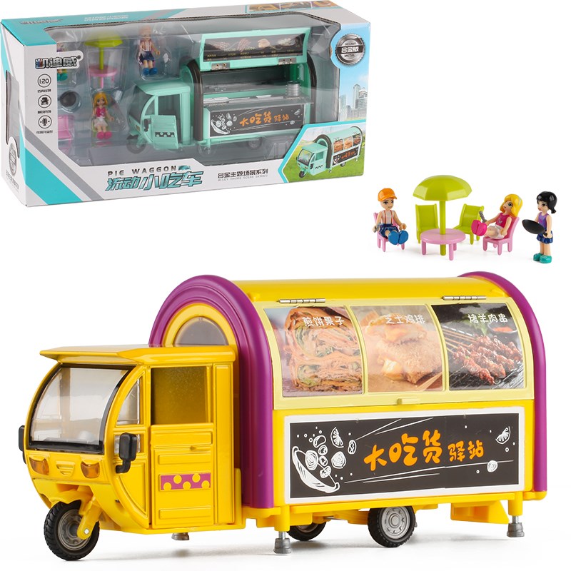 合金流动小吃车模型夜宵摊车仿真餐具配套儿童汽车野餐零食车玩具