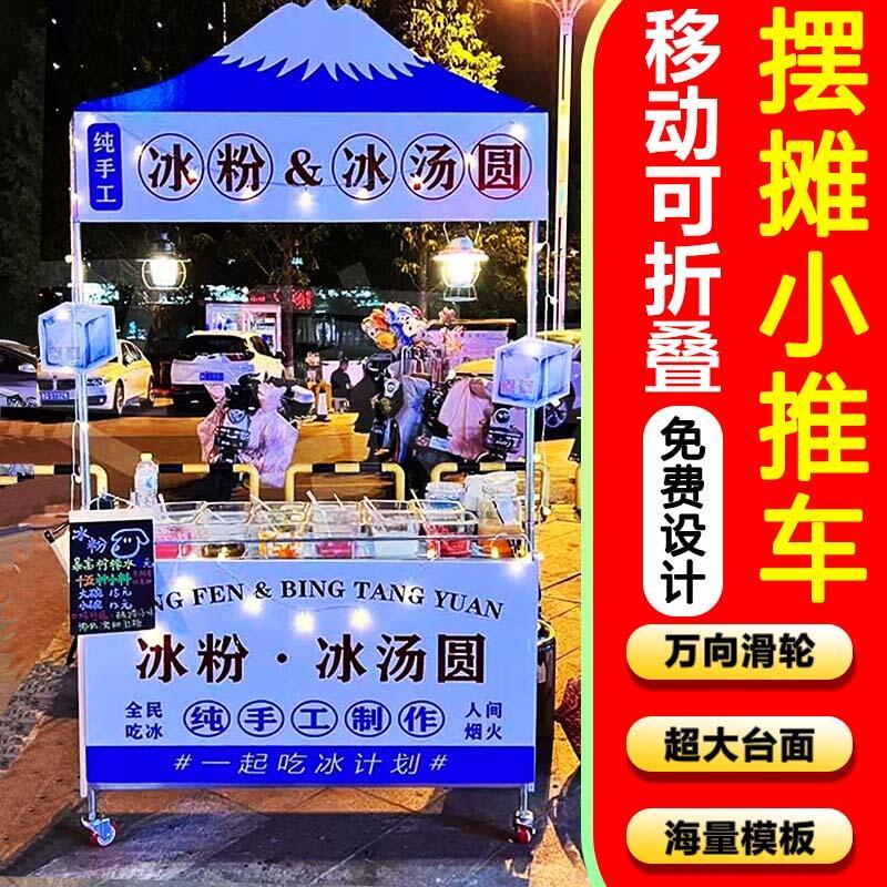 摆摊小推车可折叠冰粉手推地摊车烤肠移动摊位夜市商用流动小吃车